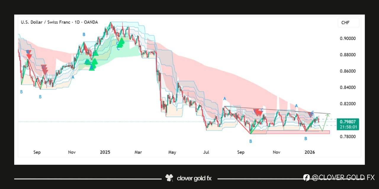 The GBPCAD 4H chart shows a corrective phase completing after a broader bearish structure followed by a developing bullish reaction from strong horizontal support around the 1.8330–1.8350 zone. Price previously respected a descending channel and completed an impulsive move down, labeled into a five-wave decline, indicating bearish exhaustion near wave 5. From this base, the market formed an ABC corrective structure where price repeatedly defended the same horizontal support, highlighting strong buyer interest and liquidity absorption. The recent decline into point C aligns with a higher-probability reversal area, suggesting sellers are weakening while buyers are gradually gaining control. As long as price holds above this support, the structure favors a bullish recovery with upside potential toward the previous corrective high near 1.8650, which also aligns with the dotted resistance projection. A clean hold and bullish confirmation from this zone could trigger a sustained move higher, while a decisive break below support would invalidate the bullish outlook and reopen downside risk.