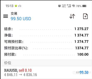 看到满足信号的抛售空,进场后看到实时支撑压力位,所以选择拿10个点99.5美金离场