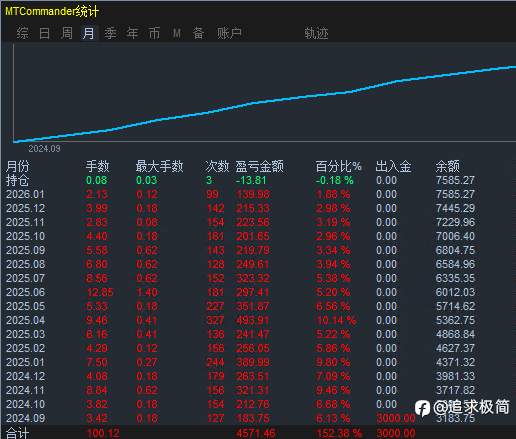 天秤座EA 2.0 运行1年5个多月总盈利152.38%,月均10%左右