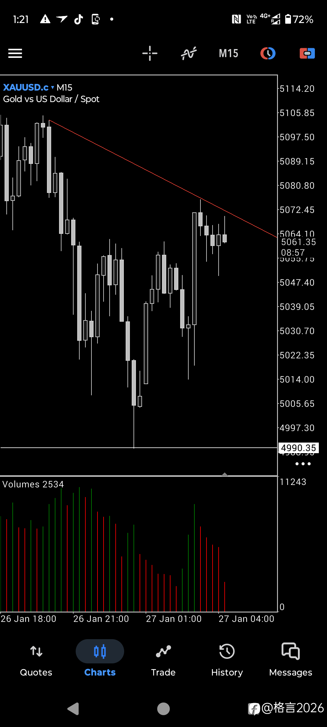 开盘大概率能一举冲高突破,绝对不跟,落回趋势线即刻出大阳吞噬前阴,下一个回调不创新低,再跟 #XAU/USD##信号交易PK赛##每日交易打卡##交易新手专区#