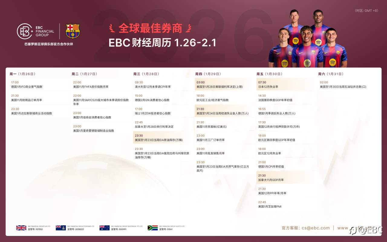 EBC交易前瞻|财经周历:2026.1.26-2026.2.1