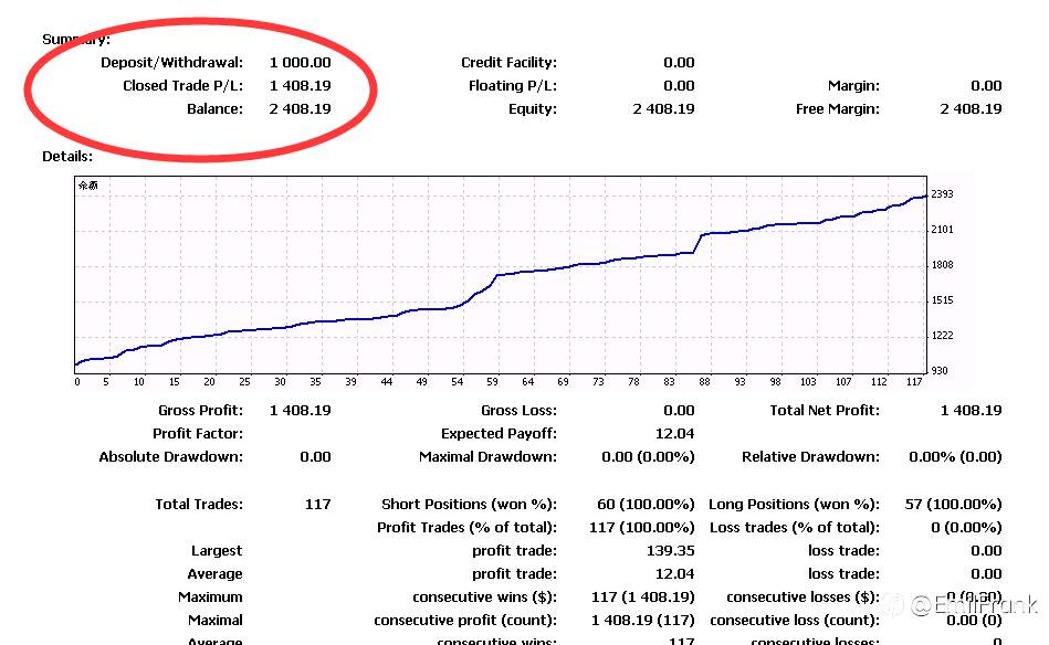 仓位: 每次仅开一个主订单,采用金字塔式加仓,最多加仓4次(历史未触发极限)。