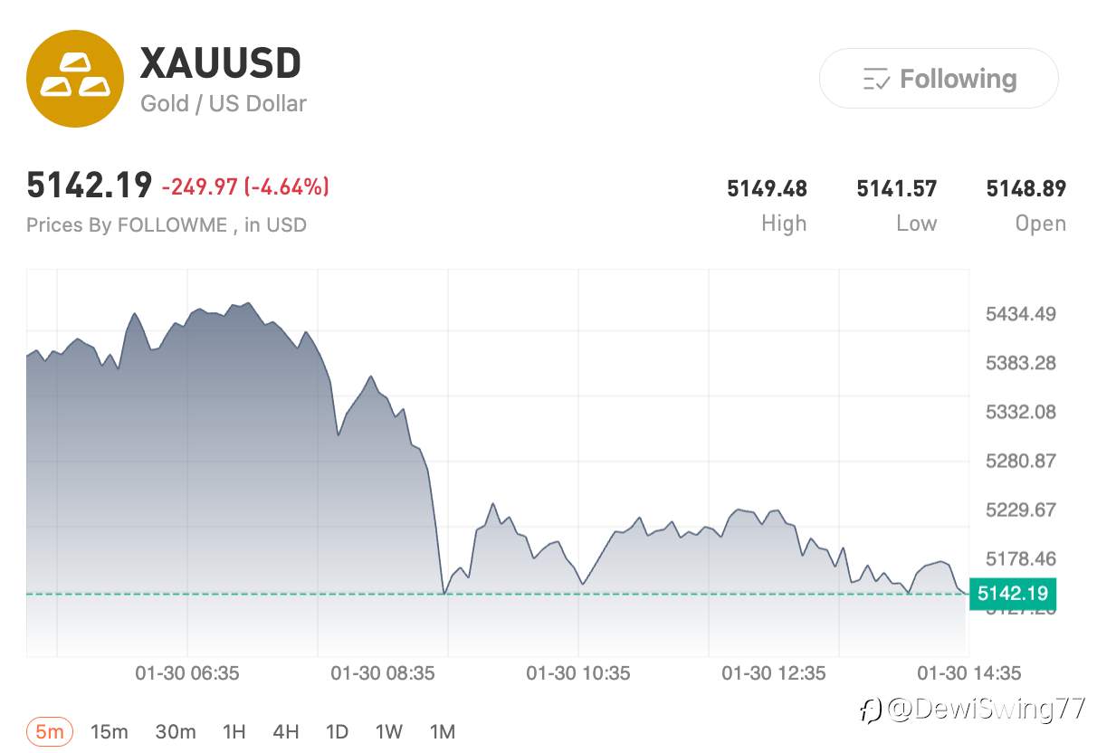 Harga emas hari ini di area 5.140-an, turun dari ATH 5.400-an sebelumnya.