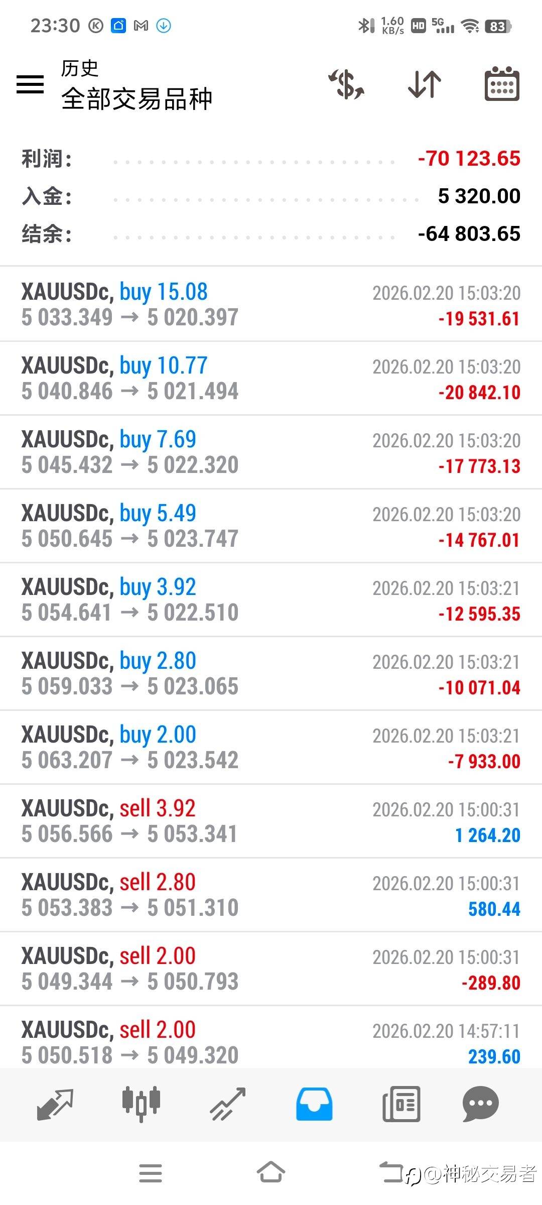 昨天晚上遇到的天地针。EA被止损了。但是我觉得非常好!!策略代码方面已经改无可改!我认为我的EA这已经是马丁策略终极形态了。只要不爆仓。还有什么可说的?要做常青树。就再等它赚回来就行。至于天地针这种行情多不多?我不敢说,但是所有EA都会面临这种情况,就看谁能挺得住!!