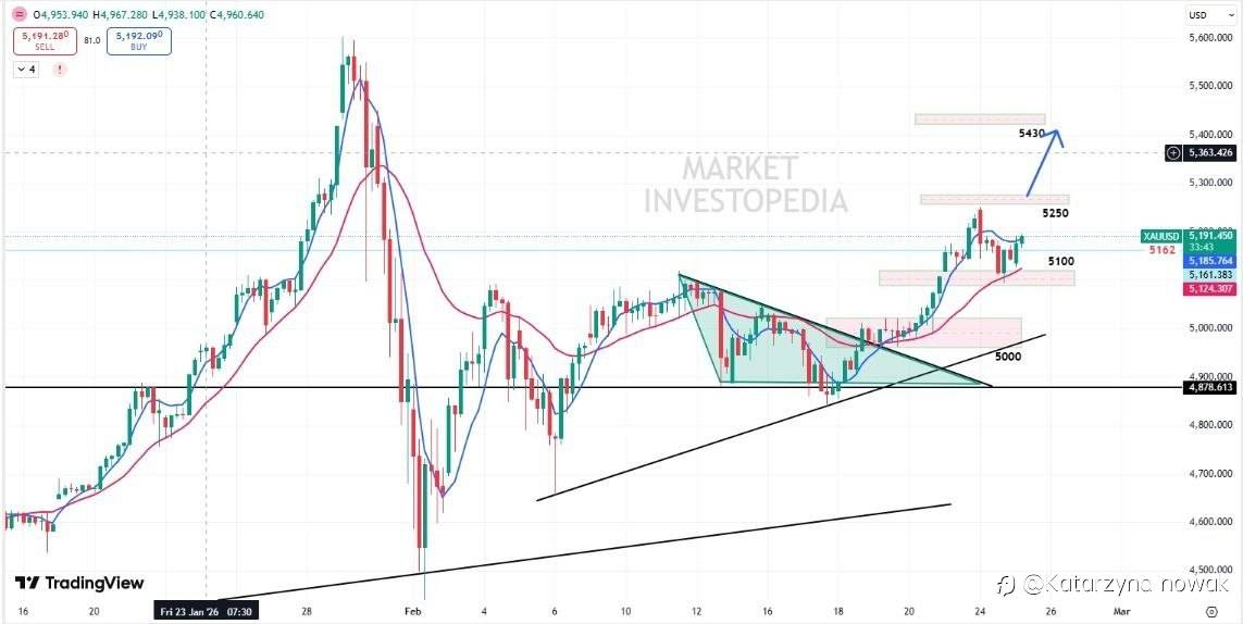 The overall trend remains strongly bullish. On the 4H chart, gold respected key support at 5100 and delivered a solid rebound. Price is holding firmly above the 5162 pivot, keeping buyers in control.