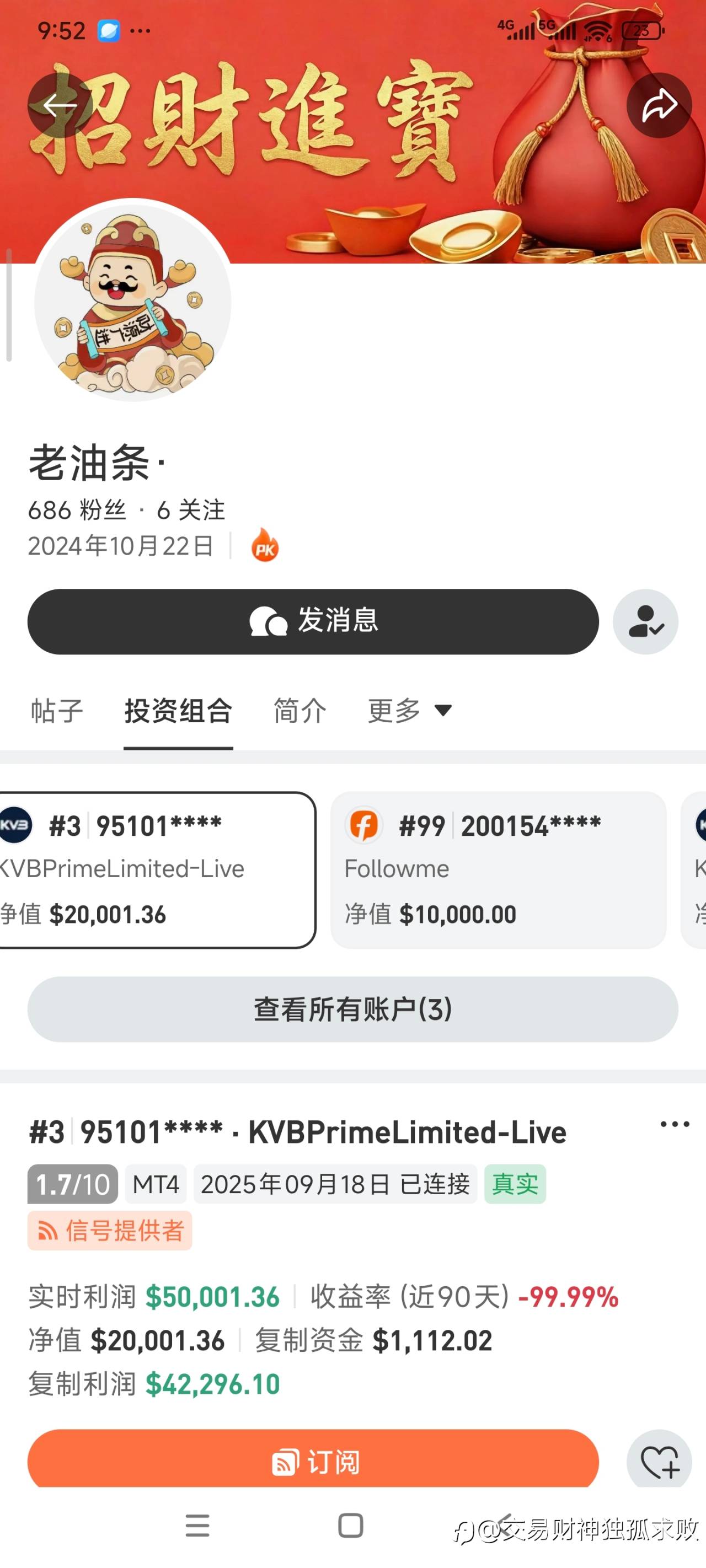 记录下“老油条”,记得前几天看老油条时,净值是归零了,今天变2W了,可能是入金了两万刀。