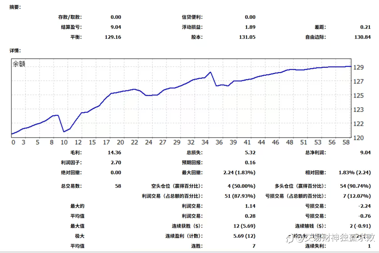 11号帐户星期天净值足120刀,现在130.8刀。这样即时做单,即时复盘就很好!这样赚了亏了都知道是什么原因。只做不复盘,事后总是稀里糊涂的!