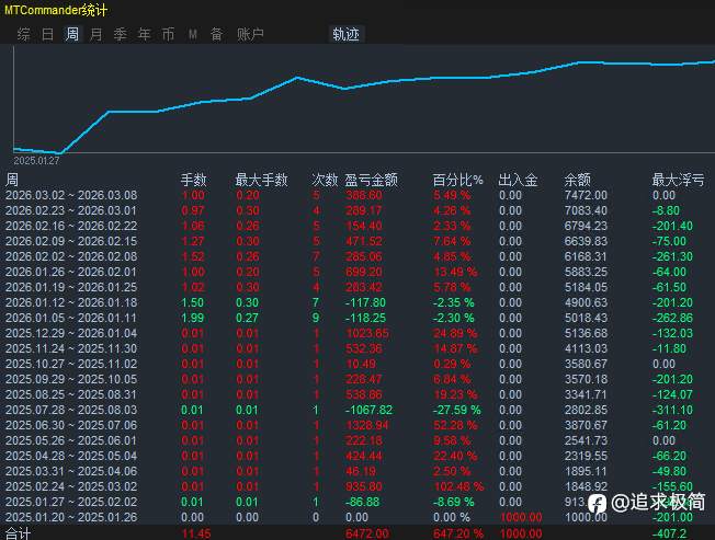 流星EA 顺势一次一单交易,每单带有止损止盈,截止目前13个多月总盈利647.2%,回撤和浮亏极低