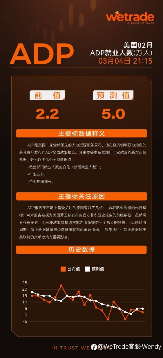 WeTrade提醒您关注3月4日美国2月ADP就业人数数据发布