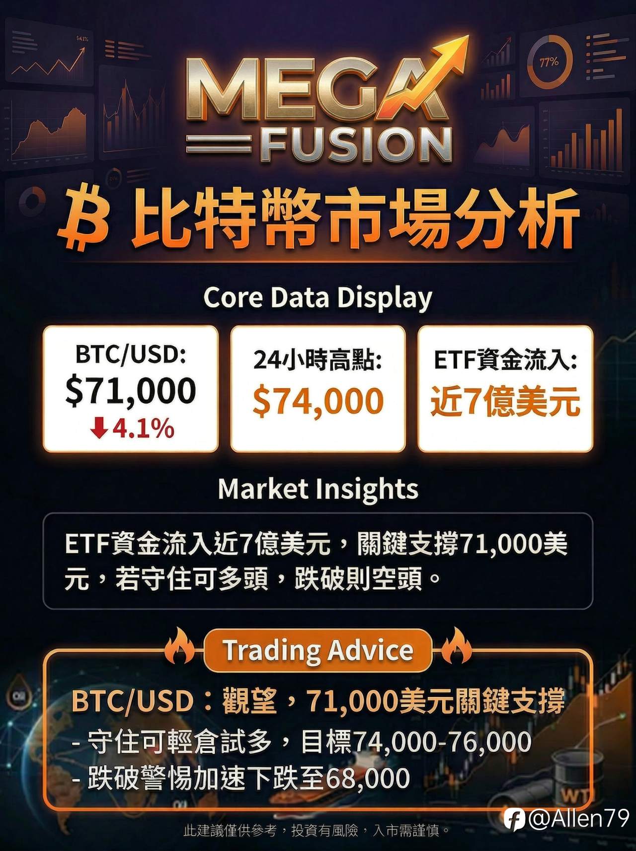 比特币价格在71,000美元附近震荡,短期资金流入仍为市场提供支撑,但关键技术区域的博弈仍在持续。