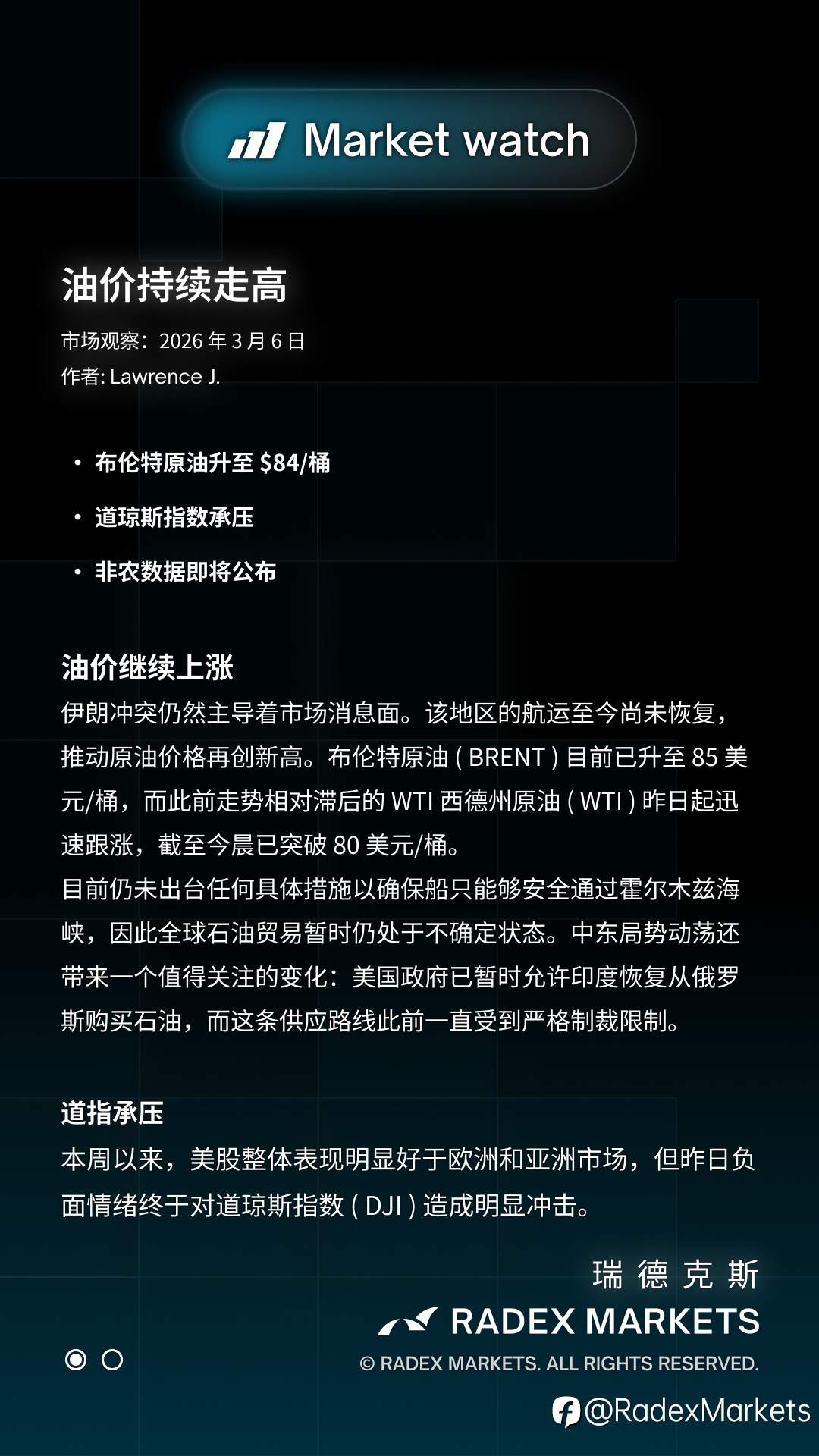 #布伦特原油 #道琼斯指数 #非农就业数据