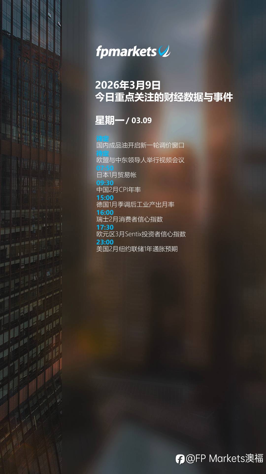 【FP Markets今日重点关注的财经数据与事件:2026年3月9日 周一】#FPMarkets澳福# #财经热点#