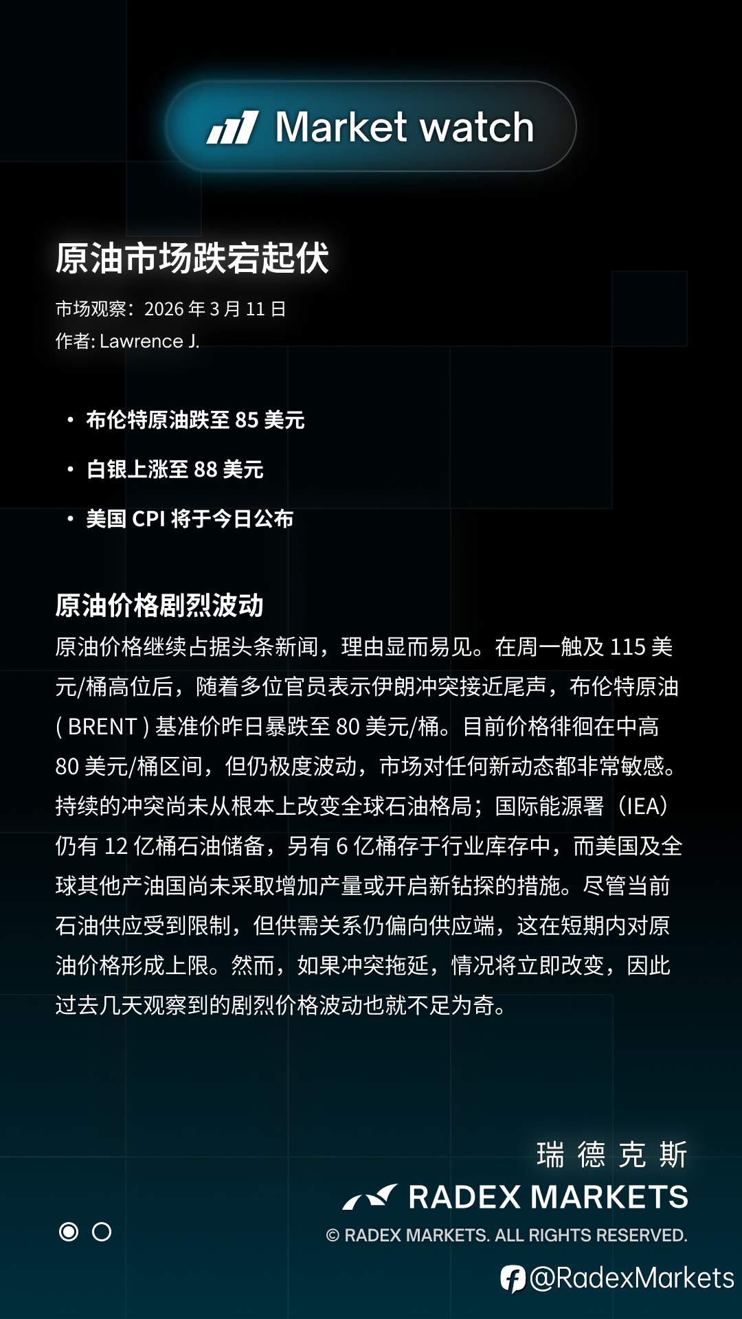📌布伦特原油跌至 85 美元