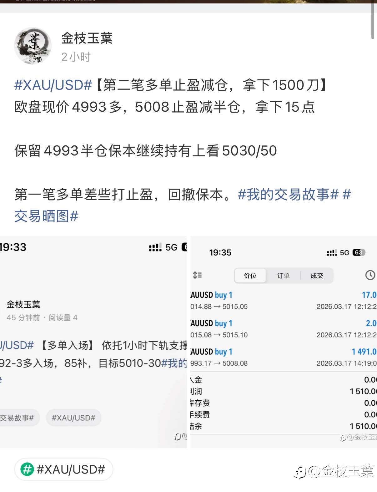 #XAU/USD# 【第二笔多单全部止盈离场,拿下5200刀】