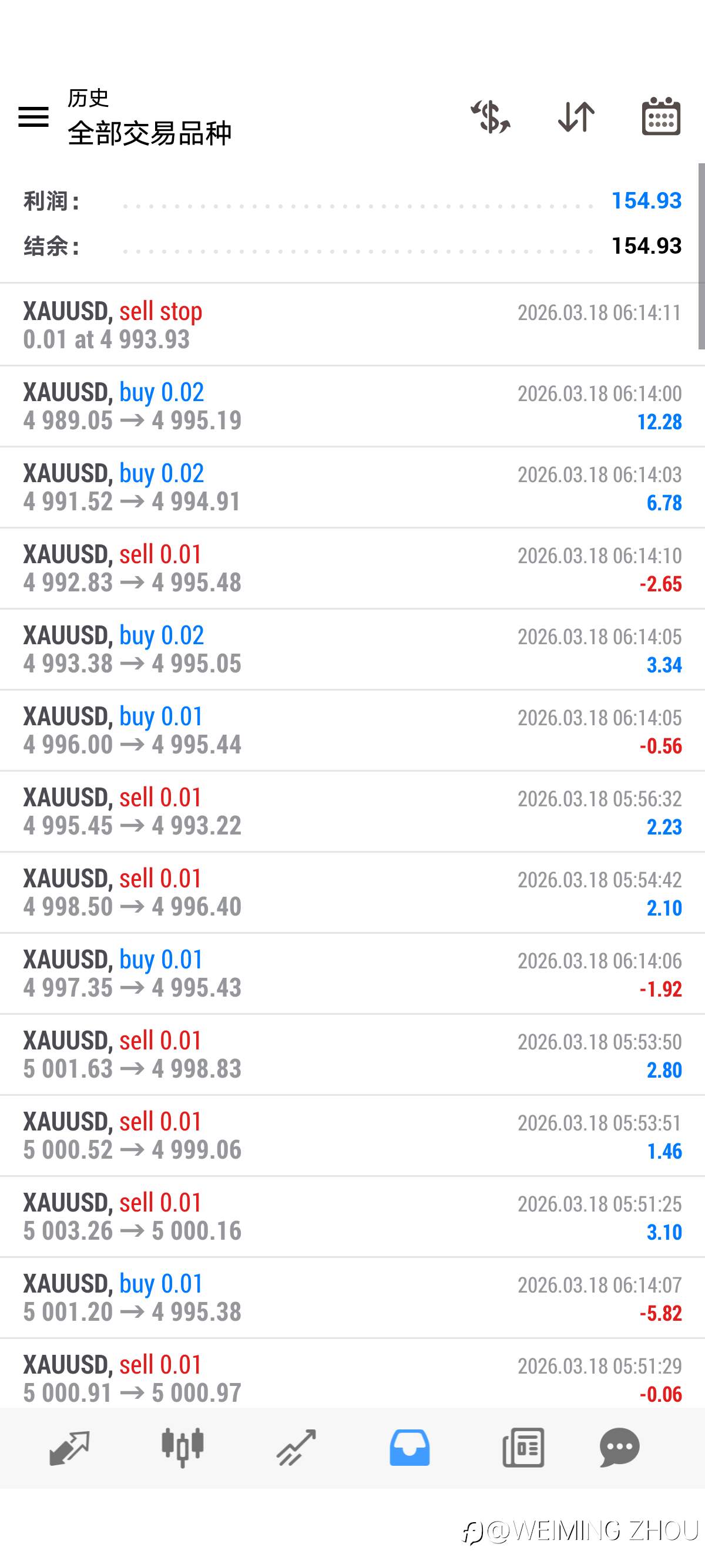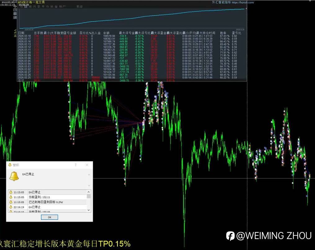 今日3/18黄金算法交易策略完成目标EA自动结束 4小时结束 收工