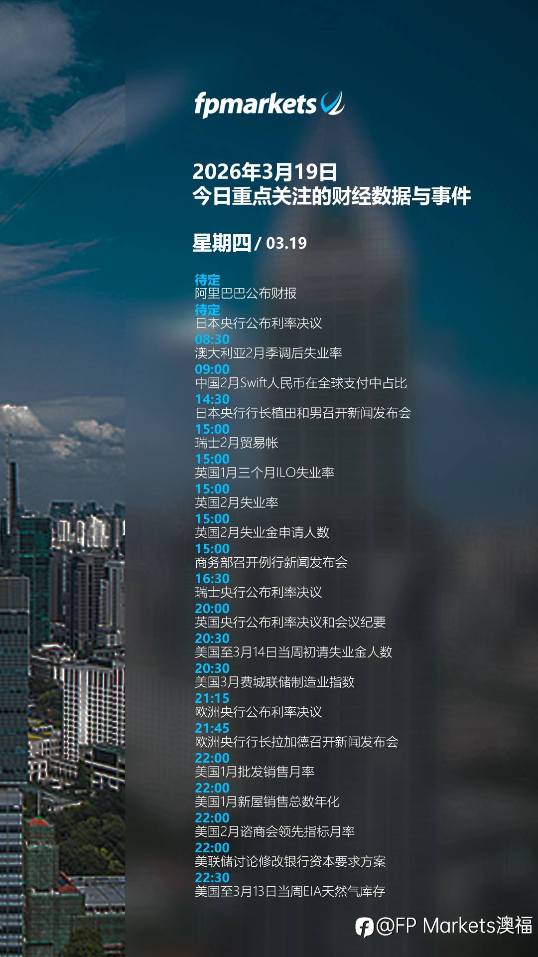 【FP Markets今日重点关注的财经数据与事件:2026年3月19日 周四】#FPMarkets澳福# #财经热点#