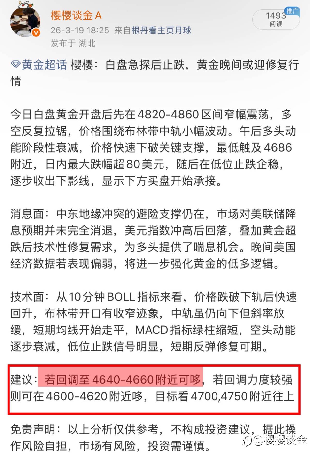 #XAU/USD# 4660附近低哆介入,直接冲高4699,30+空间稳稳洛带!