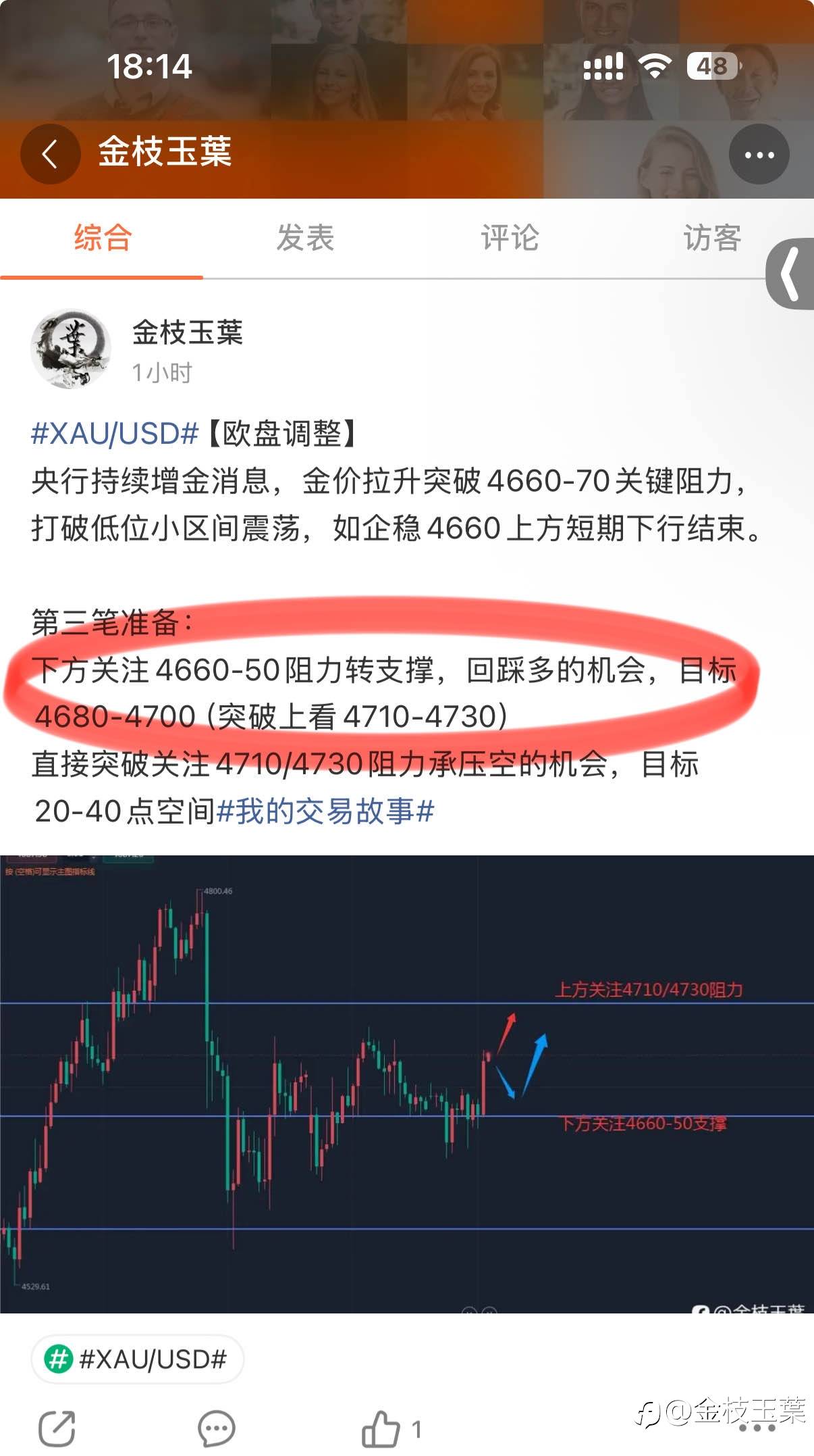 目前1小时依旧呈空头排列,保留4653半仓保本继续下看第二目标4625#我的交易故事# #交易晒图#