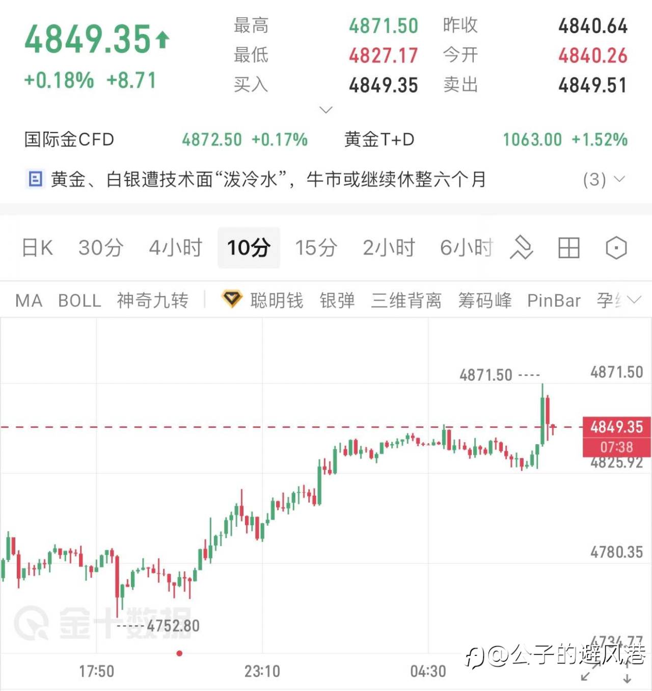 4755的位置、到目前的4870、有的只有无限的继续上看高点。