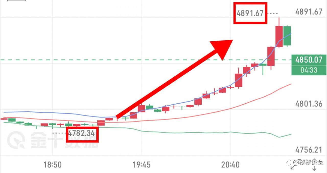 #XAU/USD# 晚间黄金如期迎来强势修复,直接开启暴涨模式,最高触及4891,远超预期目标区间,起飞了!