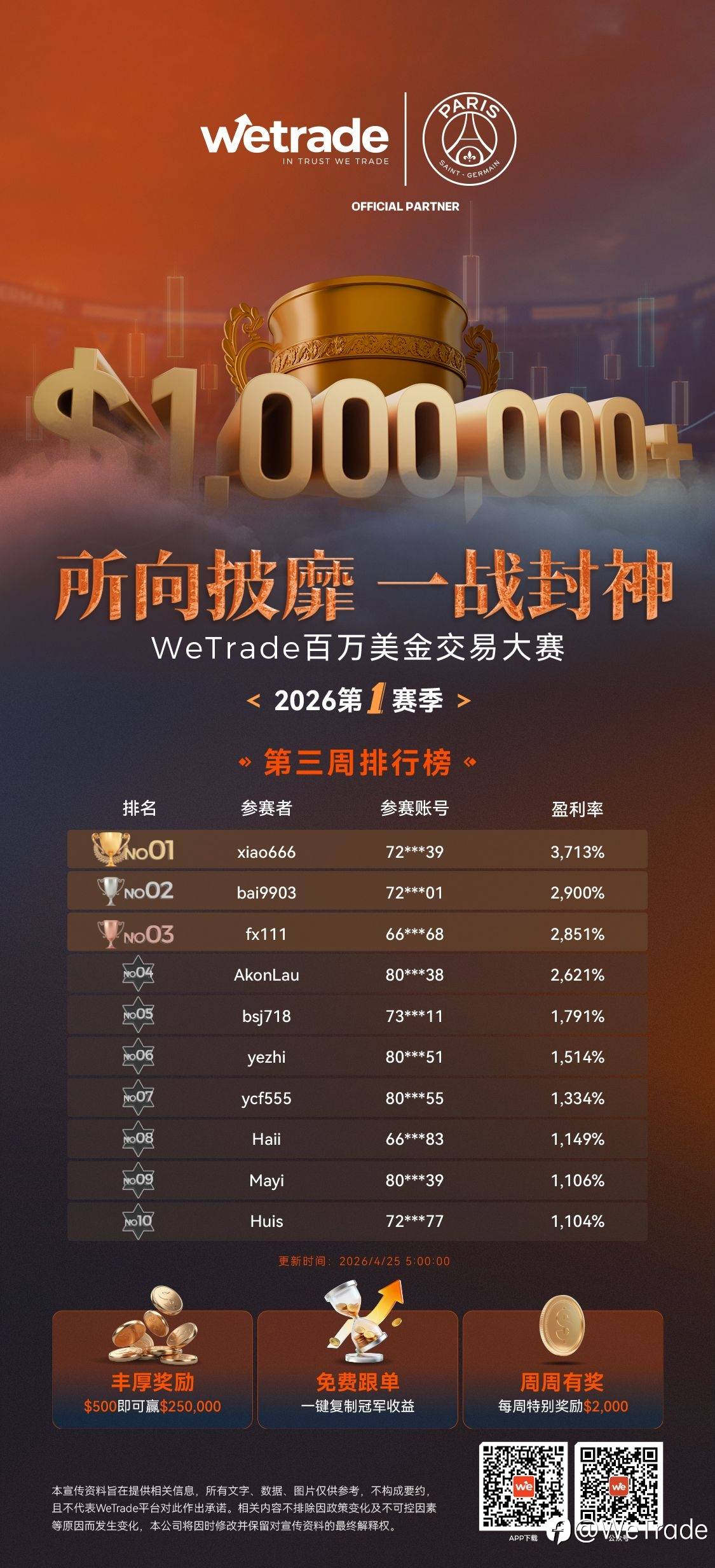 🏆 WeTrade百万美金交易大赛·第三周战报更新!