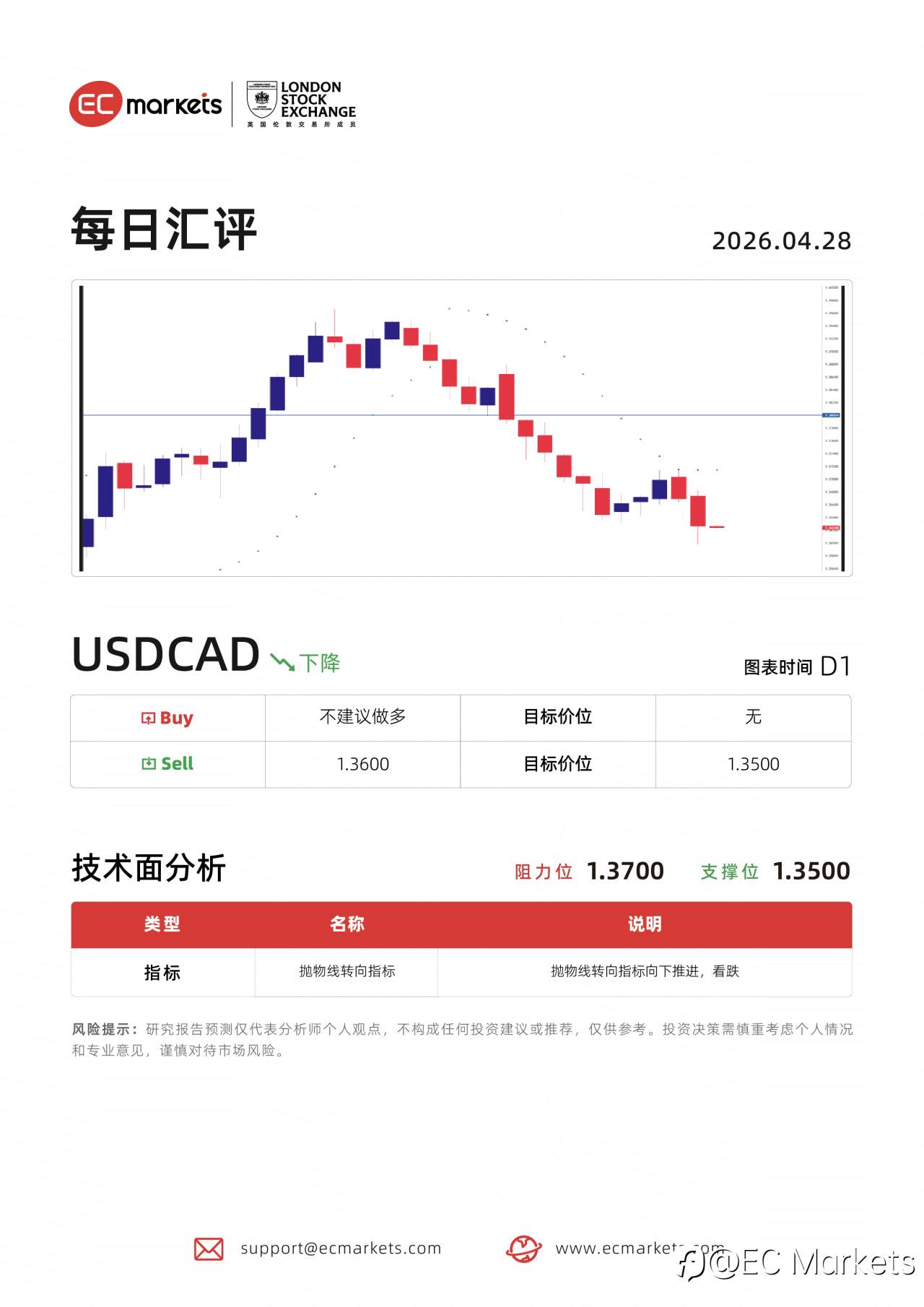 EC Markets 每日汇评 | 4月28日USDCAD #ECMarkets# #forextrading# #FX# #trading# #USD/CAD#