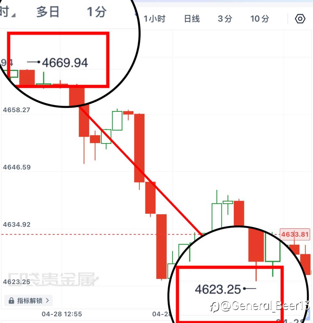 提前看好关键分界位置,跌破之后顺势分批跟进,高位分批步菊。