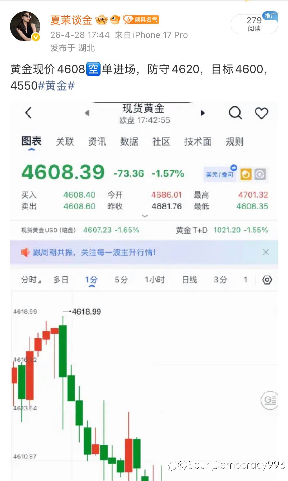 现在还在下行,马上到4550的目标,我们继续观望#XAU/USD# #交易高手与新手的区别#