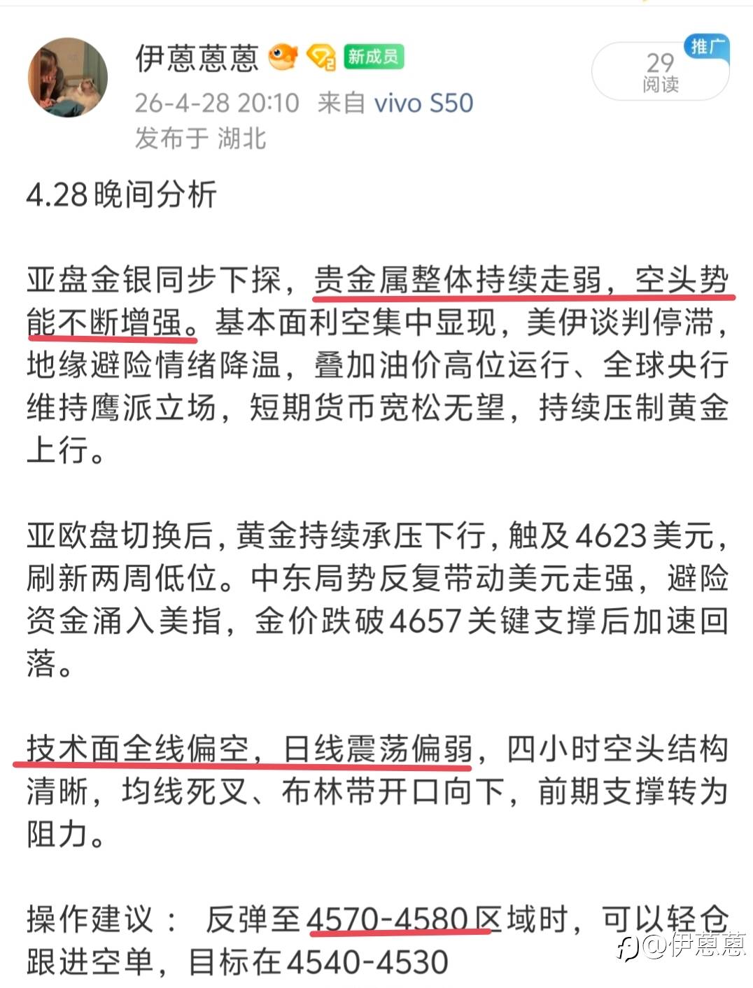 基本面利空集中,美联储鹰派预期+美元走强持续压制,技术面布林带开口向下,下跌通道清晰,反弹就是做空机会,交易务必做好风控。