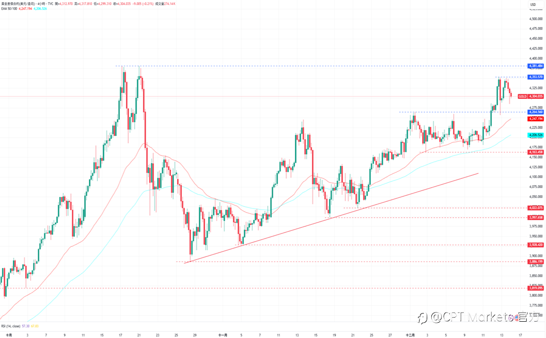 CPT Markets 黄金与原油评析:金价自4353美元回落,美联储降息后转入观望!全球石油供给量增加,油价再度承压下跌
