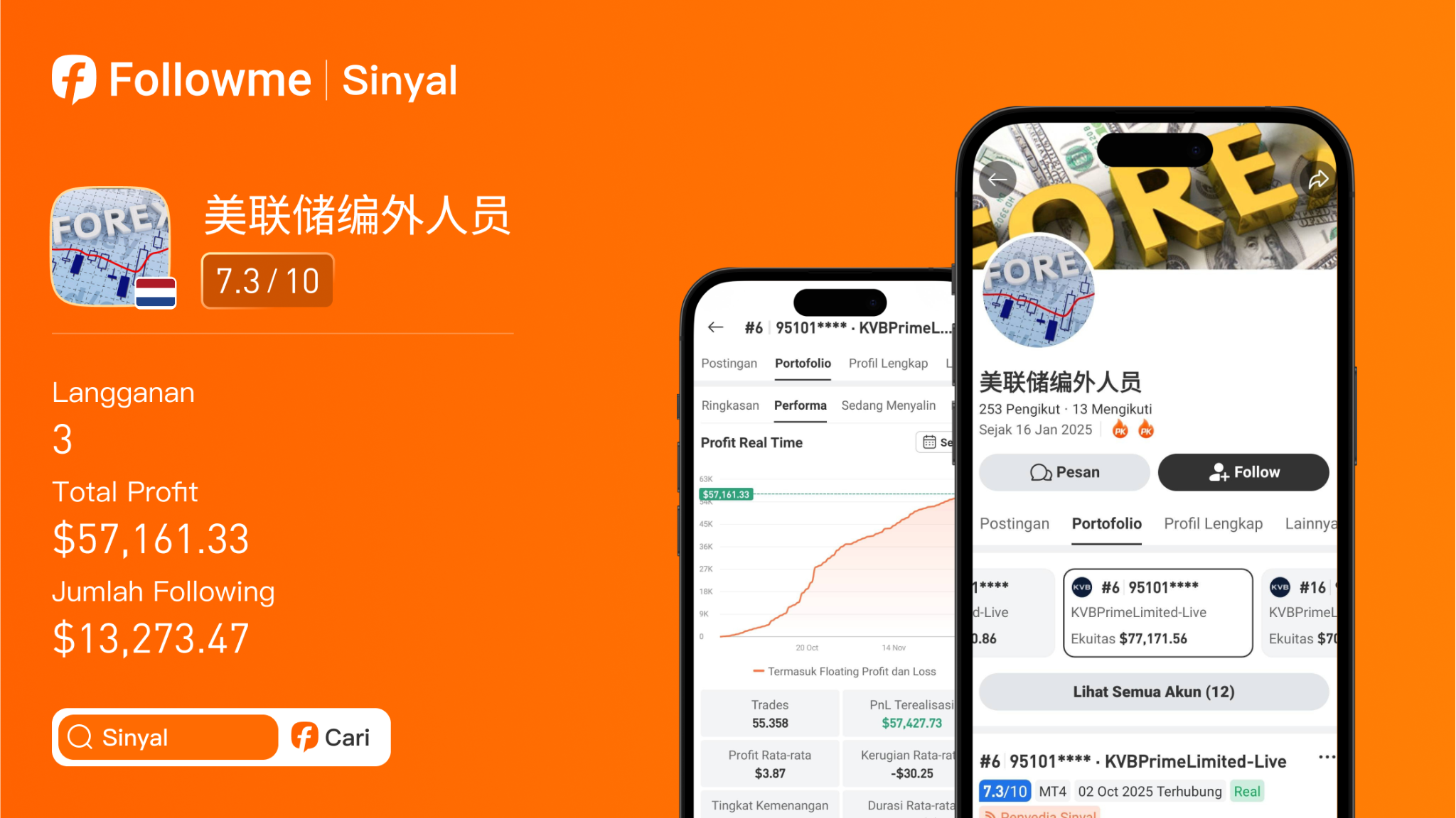 Nickname: @美联储编外人员 Belanda Broker: KVB Prime XAU/USD Specialist 美联储编外人员, trader asal Belanda dengan fokus pada XAU/USD, mencatat performa sangat impresif dengan gaya eksekusi konservatif namun sangat efektif. Dari modal awal $20,000.00, ia membukukan keuntungan $57,415.39 sehingga menghasi