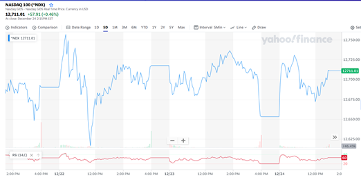 NASDAQ 100 (as of Dec 28, 2020 at 3.05 p.m.) Source: Yahoo Finance SPX 500 (as of Dec 28, 2020 at 3.05 p.m.) Source: Yahoo Finance US30 (as of Dec 28, 2020 at 3.05 p.m.) Source: Yahoo Finance US30 futures rose 149 points during the overnight trading on Sunday. Both the SPX500 futures and NAS100 futu
