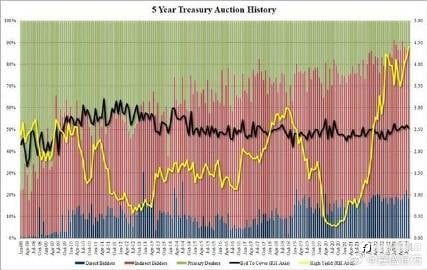 上周美联储主席鲍威尔表露适当时准备进一步加息后,美联储的鹰派立场迎来首次考验——两年和五年期两批美债标售。 美东时间8月28日周一美国财政部公布,完成规模450亿美元的两年期美国国债标售。虽然结果并非完全一致,但总体而言需求强劲,这次联储的立场经受住了考验。 本次标售的得标利率为5.024%,为2006年7月以来首次标售中标利率超过5%,较7月的前次标售利率4.823%高约20个基点,但还低于预发行利率5.028%。 在最近四次标售中,本次是第三次未出现截标利率高于预发行利率的所谓尾部。这是积极的信号,一旦出现尾部,则尾部越大,意味着财政部被迫所出售给竞标者的出价越低。 点击此处 T