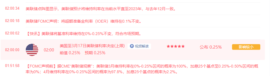交易的过程就是自我的修炼,没人知道你经历了什么,但走过的每一步都算数,做市场的舞者,只要行情还在,演出就没有落幕~ 随着美联储利率决议的莅临, 黄金终打破僵局,开启多头的强势爆发。然而在利率决议前,金价短线下挫至1723美元,距离昨日直播给出的1718做多相差五美元。黄金在利率决议公布期间持续走高,一度攀升至1751美元关口,日内较低点回升近30美元。 凌晨美联储将基准利率维持在0%-0.25%不变,点阵图预计将维持利率在当前水平直至2023年,并且维持当前资产购买步伐直至充分就业和物价稳定目标取得实质性进展。美联储主席鲍威尔强调了美联储的政策立场:现在还不是开始讨论缩减购债规模的时候。 然而