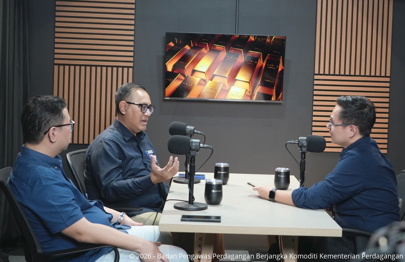 Kepala Badan Pengawas Perdagangan Berjangka Komoditi (Bappebti), Tirta Karma Senjaya melakukan kegiatan tapping pada dialog podcast bersama CEO dan Founder PT Solusi Finansialku Indonesia (Finansialku.com), Melvin Mumpuni bersama CEO dan Co-Founder PT Indonesia Logam Pratama (Treasury), Andreas Sant