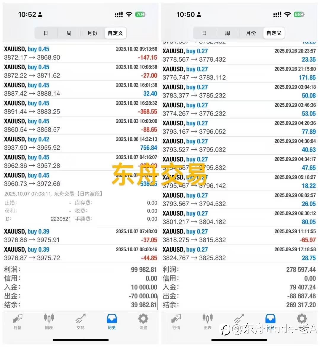 一般跟单网站只选择跟实时订单,也就是说不会跟挂单,而且跟单不会跟信号的止盈止损,这样的话,各种延迟!有图为证,看下面。 6图为本地跟单,ABC图分別为某个券商自己的网站跟单系统。 6图本地跟单0.01手盈利20美金,乘2大概就是40美金,比A图多盈利6美金。 C图最可怕😱!漏跟订单……(有时候漏跟亏损单还好,漏了盈利单就……)长期辩证看,有时候漏亏损有时候漏盈利也就抵消了,但是时间需要足够长。 网站跟单解决办法,大资金分成多个小资金跟单,同一笔订单有的漏了有的没漏,也有可能都漏了,看运气吧!但是按月付费就成本增加了,按比例分成的就没什么损失。#信号交易PK赛#[