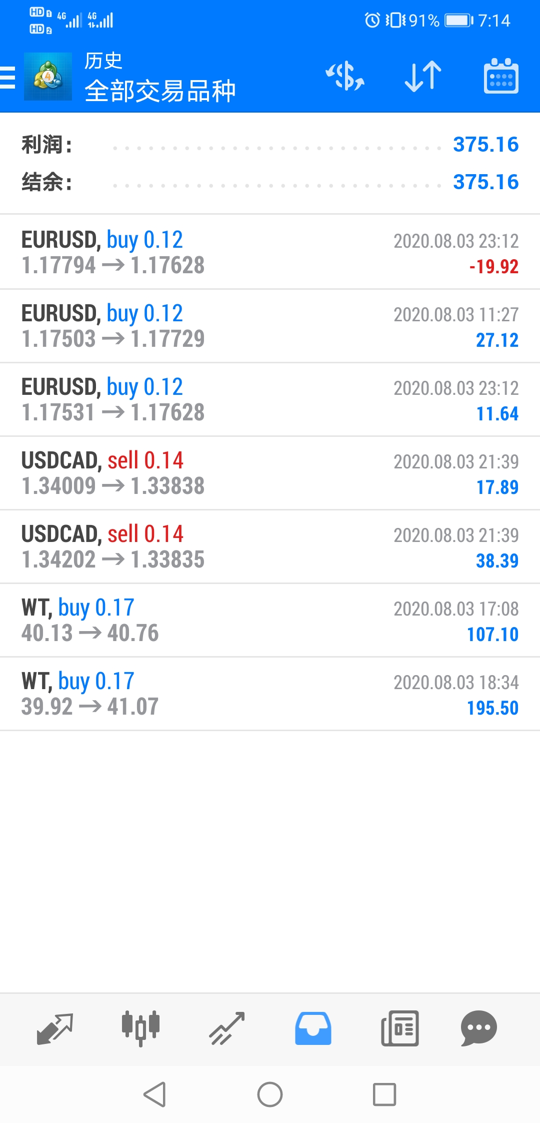 2025年8月交易总结7月目标:250USD,目标也算达成了初始值:184.07USD;盈利64.1USD,期末净值:248.83USD9月目标:500USD这个月大部分时间在做原油,一共做了30单,其中盈利10单,亏损20单。最高做到342USD,然后又慢慢的亏回去了,做原油也是亏亏赚赚,没犯大错误。其中最重要的一周,晚上忙着去谈恋爱去了,没注意看行情,亏了一些,不然净值应该更高一些。#WTI.F##XAU/USD# 期末净值:做单明细