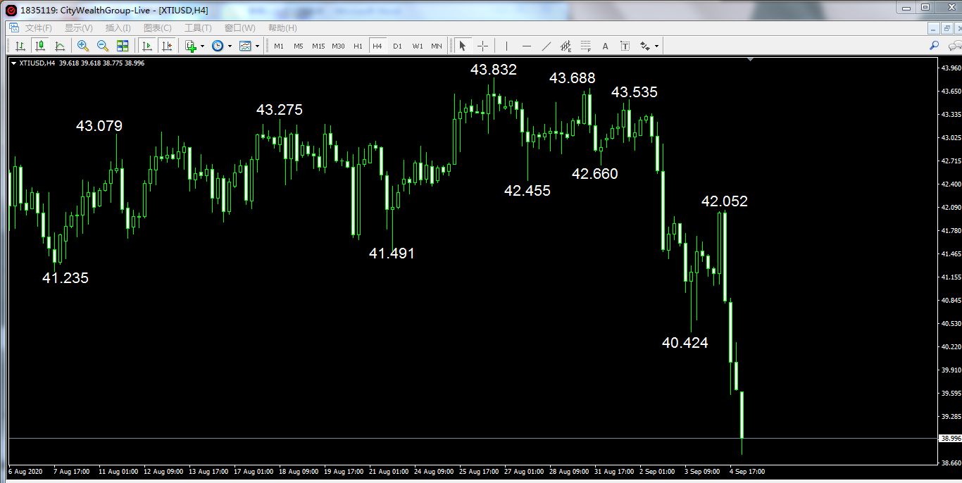 风险控制是投资交易的核心,净值的最大回撤最好控制在10%以内,年化收益风险比在200%以上,无杠杠市场仓位在20%—90%变换,高杠杠市场以1倍杠杠作为底仓2—5倍杠杠作为浮仓,盈亏比控制在1.5以上。严控风险后收益超过其他利率就可以充分利用其他资金入市,扩大本金追求复利成长,睡后收入在等你。经过上周三与上周五两天的暴跌,创出了6月初40.574以来没有的跌幅与久期,打破了波段低点34.607—37.129—39.083—41.491围成的震荡缓涨趋势,也就意味着43.832向下脱离了之前一个季度的形态形态结构,新的下跌趋势或已出现。周线周期下,8.383—43.832构成了同等级别42.61