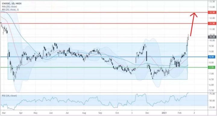 石油、天然氣價格未見疲態,大型油股持續受惠, 且看中海油 CNOOC (883.HK)、雪佛龙 Chevron (CVX.US) 美国多个州近日继续受到北极寒流侵袭。北极寒流自周日 (2月14日) 开始大举南下,侵袭全球石油重镇德克萨斯州。尽管以干燥炎热闻名的德州,往常总是终年温暖、夏季炎热,但在本波寒流的夸张强袭下,过去48小时内全州都出现了「华氏0°F」(摄氏-17.78°C)的极端酷寒。 超过30年来未见的严寒天气使德州停转,行业估计美国石油产量每天因此减少超过350万桶,约等于总产量的30%。在原油供应紧张的情况之下, WTI原油期货 (3月份合约) 在今天 (2月18日) 的亚洲交易