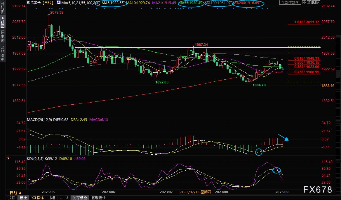 汇通财经APP讯——周三(9月6日)亚欧时段,现货黄金小幅下探,一度刷新逾一周低点至1923.50美元/盎司,隔夜美联储官员发表鹰派讲话,帮助美元指数刷新近半年高点,美债收益率也小幅走高,令金价跌破了55日均线,短线看空信号有所增强,后市或进一步试探200日均线1916.66附近支撑。 美联储理事沃勒周二表示,最新一轮经济数据为美联储提供了谨慎考虑是否需要再次加息的空间。 IG的市场策略师Yeap Jun Rong表示:“美联储关于逐次会议做出决策的指引使得11月/12月进一步收紧政策的押注依然存在。” 他说,油价跳涨无助于削弱全球通胀前景,让投资者更加相信利率将在更长时间内维持高位,并称,下