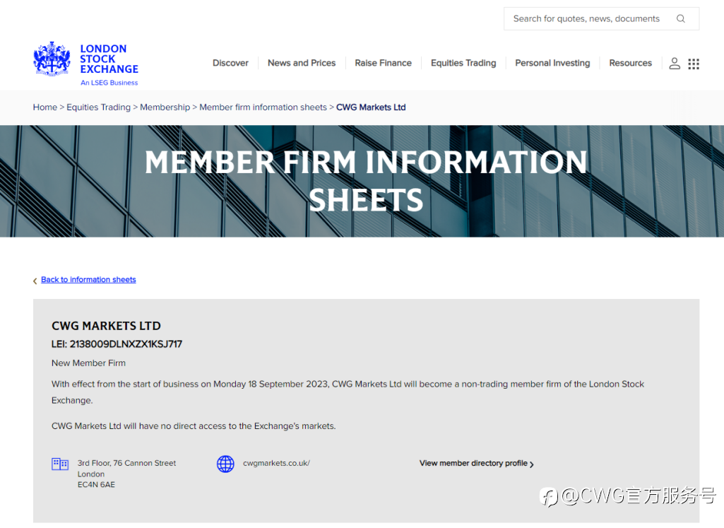 稳健前行,引领未来!CWG Markets 进军伦敦证券交易所!
