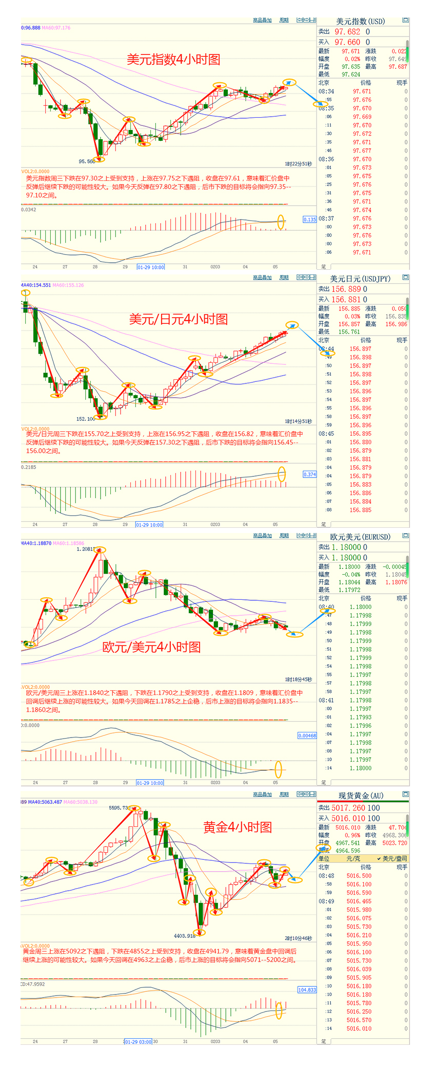 CWG Markets市场资讯2026年2月5日(周四): 汇讯摘要: 周三,美元指数震荡上行,但仍处于近期区间内部,最终收涨0.25%,报97.63;基准的10年期美债收益率收报4.280%,对美联储政策利率敏感的2年期美债收益率收报3.553%。 周三黄金价格的走势堪称典型的分化行情。现货金一度冲高至5091.63美元/盎司,涨幅超过3%,却在随后几个小时内快速回吐大部分涨幅,最低触及4853美元附近,最终收在4963.59美元,勉强录得0.3%的微涨。 因美伊核会谈持续反转,WTI原油在美盘时段直线拉升冲上65美元,一度涨近2%,随后回吐部分涨幅,最终收涨0.92%,报64.5