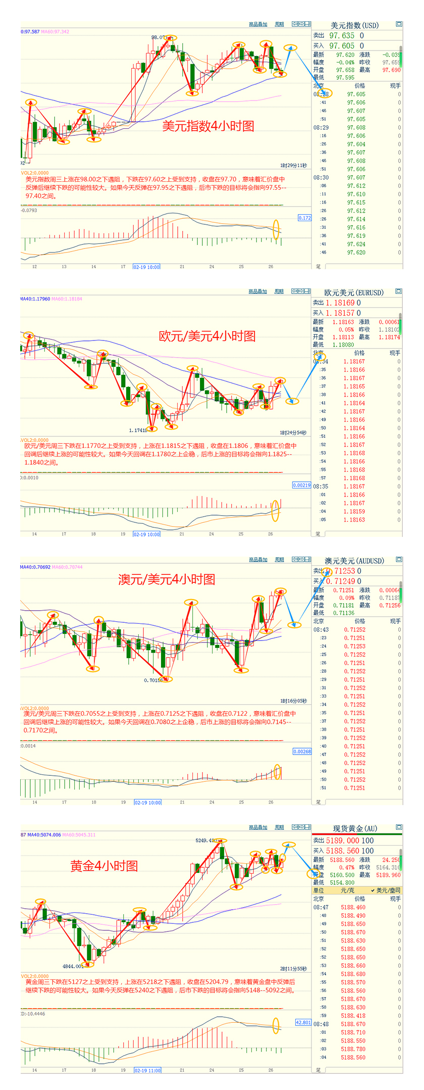CWG Markets市场资讯2026年2月26日(周四): 汇讯摘要: 周三,随着市场情绪改善,美元失去强势。美元指数收跌0.01%,报97.67;随着风险偏好回暖、股市上涨削弱了避险资产的需求,美国国债收益率延续涨势。基准的10年期美债收益率收报4.056%,对美联储政策利率敏感的2年期美债收益率收报3.475%。 周三,现货黄金价格上涨0.4%,收报至5164美元/盎司附近,盘中一度飙升1.5%触及5217.63美元的高位,关税通胀压力与地缘政治阴云共同发酵的结果,投资者纷纷涌入黄金这一传统避险资产,寻求对冲不确定性的庇护。 国际油价承压,欧佩克+代表预计该组织将恢复小幅增产。