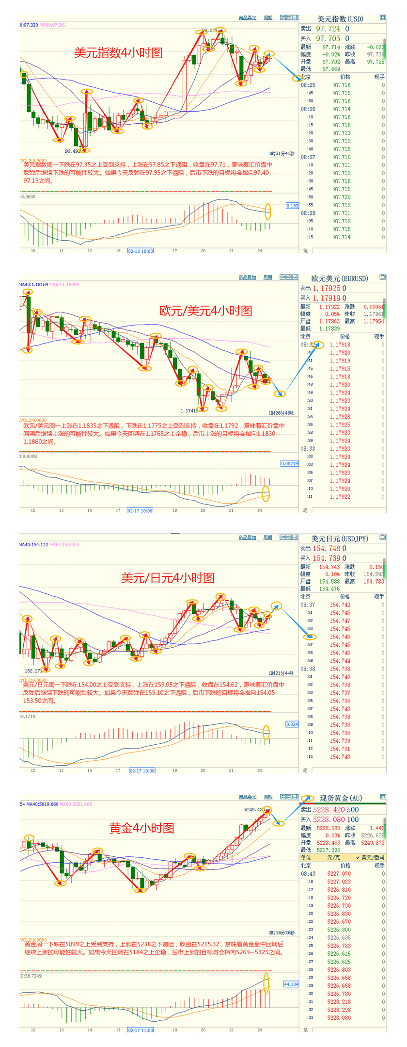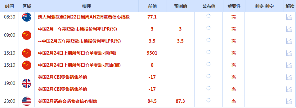 CWG Markets市场资讯2026年2月24日(周二): 汇讯摘要: 周一,在美最高法院推翻特朗普的关税政策后,交易员重新评估美国关税政策,美元指数横盘整理,最终收跌0.02%,报97.73。基准的10年期美债收益率收报4.0330%,对美联储政策利率敏感的2年期美债收益率收报3.4440%。 周一(2月22日),现货黄金价格大涨2.5%,为连续四个交易日上涨。周二(2月23日)亚市早盘,金价延续涨势,截止07:35,现货黄金一度触及5250关口附近,为1月30日以来新高。美国黄金期货4月合约同样劲升2.8%,结算价报5225.60美元/盎司。这波涨势是多重不确定性叠加引发的避险