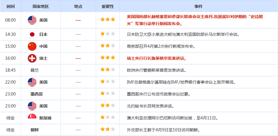 CWG Markets市场资讯2026年4月8日(周三) 汇讯摘要: 周二,投资者在美方设定的最后期限前持观望态度,美元指数徘徊在近11个月以来的最高水平附近,最终小幅收跌0.04%,报99.64;基准的10年期美债收益率收报4.300%,对美联储政策利率敏感的2年期美债收益率收报3.7980%。 当地时间周二晚间,就在美东时间最后期限即将到来之际,美国总统特朗普在社交媒体“真相社交”上突然发文,宣布同意暂停对伊朗的轰炸与军事打击行动,为期整整两周。这一重磅消息犹如一颗“和平炸弹”,迅速打破了市场对中东紧张局势的担忧情绪,全球金融市场随之剧烈波动。周三(4月8日)亚市早盘,油价在短短