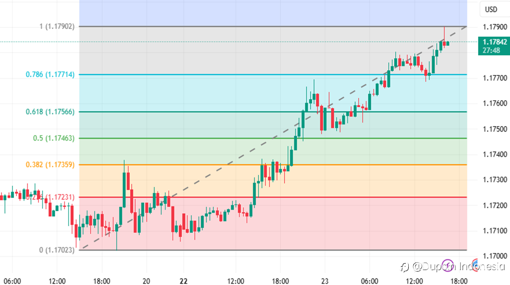 Trend : Bullish | Timeframe 30m Sikap Hati-hati ECB Menguntungkan Euro EUR/USD diperdagangkan stabil di sekitar 1,1780, menegaskan fase konsolidasi setelah reli kuat beberapa pekan terakhir. Secara fundamental, euro mendapat dukungan dari persepsi bahwa ECB akan bersikap lebih berhati-hati dibanding