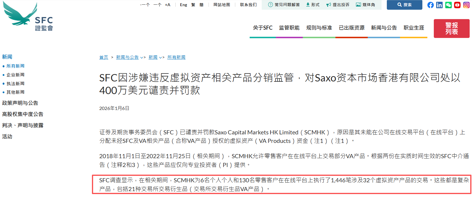 最近,香港外汇圈传出一条不太好听的消息。证监会正式谴责盛宝金融(香港),并罚款400万港元。 原因就是本该只卖给专业投资者的虚拟资产产品,被长期放在平台上让散户随便交易。而且,这事一拖就是四年。 散户违规交易虚拟资产四年 证监会披露,从2018年11月到2022年11月,盛宝金融在其网上交易平台,允许客户买卖多项虚拟资产相关产品。 问题在于,当时已经生效的监管通函明确指出,这类虚拟资产产品原则上只适合专业投资者,普通零售客户并不符合要求。但实际情况是: 涉及32项虚拟资产产品;共执行1446笔交易;客户包括130名零售客户,以及6名个人专业投资者;其中21项属于交易所买卖的衍生类虚拟资产产品。