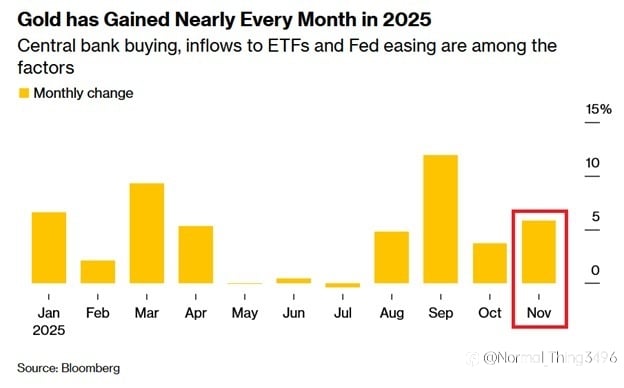 * Gold marked the 4th-strongest year over the last 100 years, only behind 1973, 1974, and 1979. * In 2025, Gold posted positive returns in 10 months out of 11 (till November) * It generated returns of +6.0% in November, the 4th consecutive monthly gain. * This followed +3.7% in October and +11.9% in