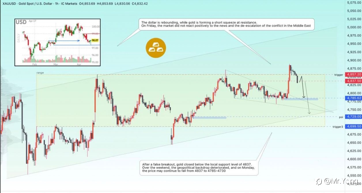 XAUUSD / #黄金 📈 市场对周五的利好消息反应冷淡 ——————————————— 周五,中东冲突降级的消息提振了黄金价格;然而,几个小时后,市场对该消息失去信心,并恢复抛售…… 伊朗关闭了霍尔木兹海峡,...