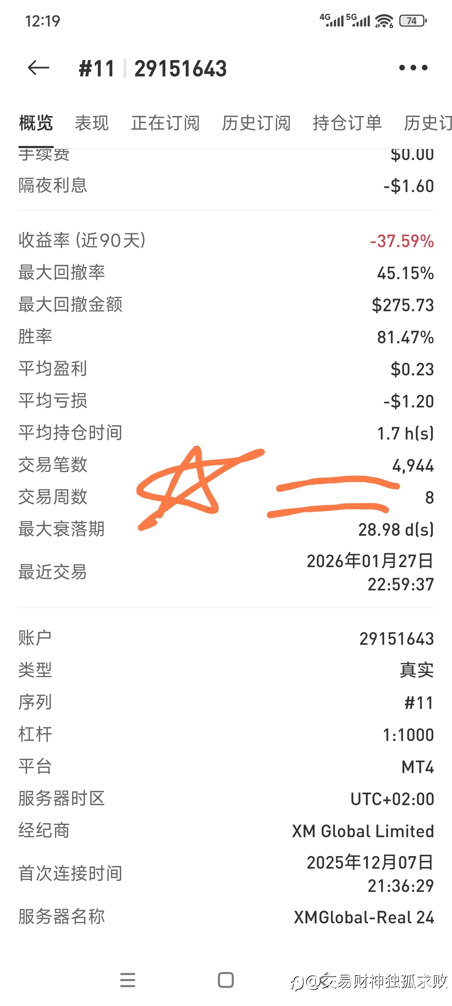 11号帐户今天350刀开始做单,362刀做单结束!增长了12刀,约3%,现在已做了4944单!